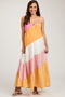 Beige Smocked Square Neck Back Cutout Tiered Maternity Midi Dress