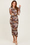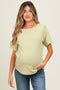 Beige Solid Brushed Rib Long Sleeve V-Neck Fitted Maternity Midi Dress