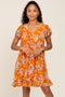 A soft linen maternity midi dress featuring a square neckline, a smocked elastic top, elastic straps with ruffle trim and side pockets.
