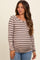 Beige Striped Ruched Side Maternity Long Sleeve Top