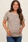 A striped knit maternity top featuring a crew neckline and short sleeves.