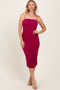 Beige Striped Sleeveless Side Slit Maternity Midi Dress