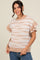 Beige Textured Stripe Ruffle Short Sleeve Sweater