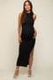 A brushed soft knit cardigan featuring long sleeves, an open front, side pockets and side slits.