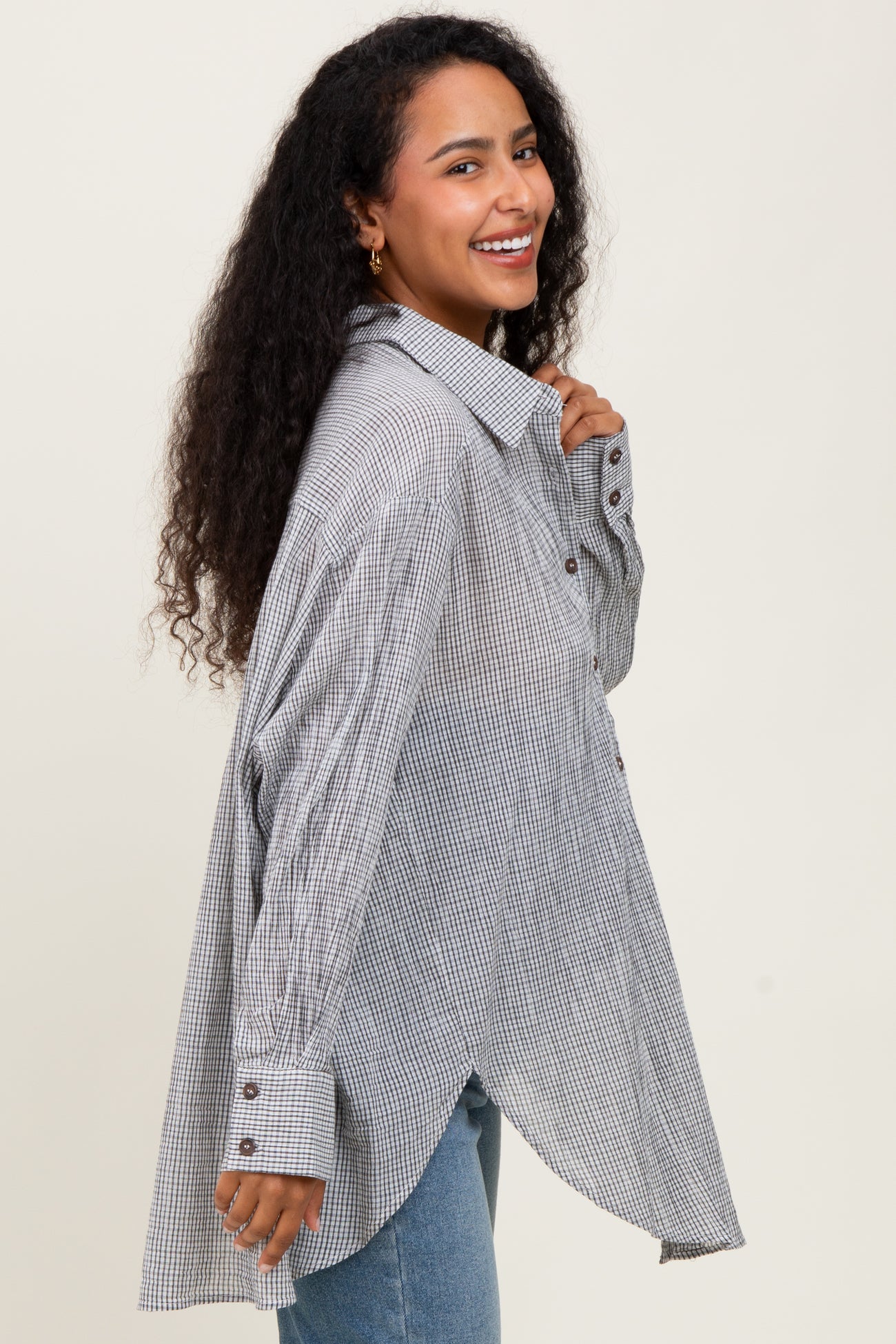 Black Checker Plaid Oversized Button Down Maternity Shirt