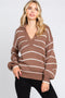 A solid long open front cardigan in a chunky knit with two pockets in front.