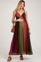 A color blocked linen maternity dress featuring a slight square neckline, adjustable straps and double lining.