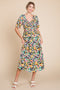 A top and skirt floral accent maternity coverup set. Features a sleeveless, rounded neckline top and an elastic waist maternity midi skirt.