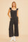 Black Denim Jumpsuit With Ruffle Shoulder Strap