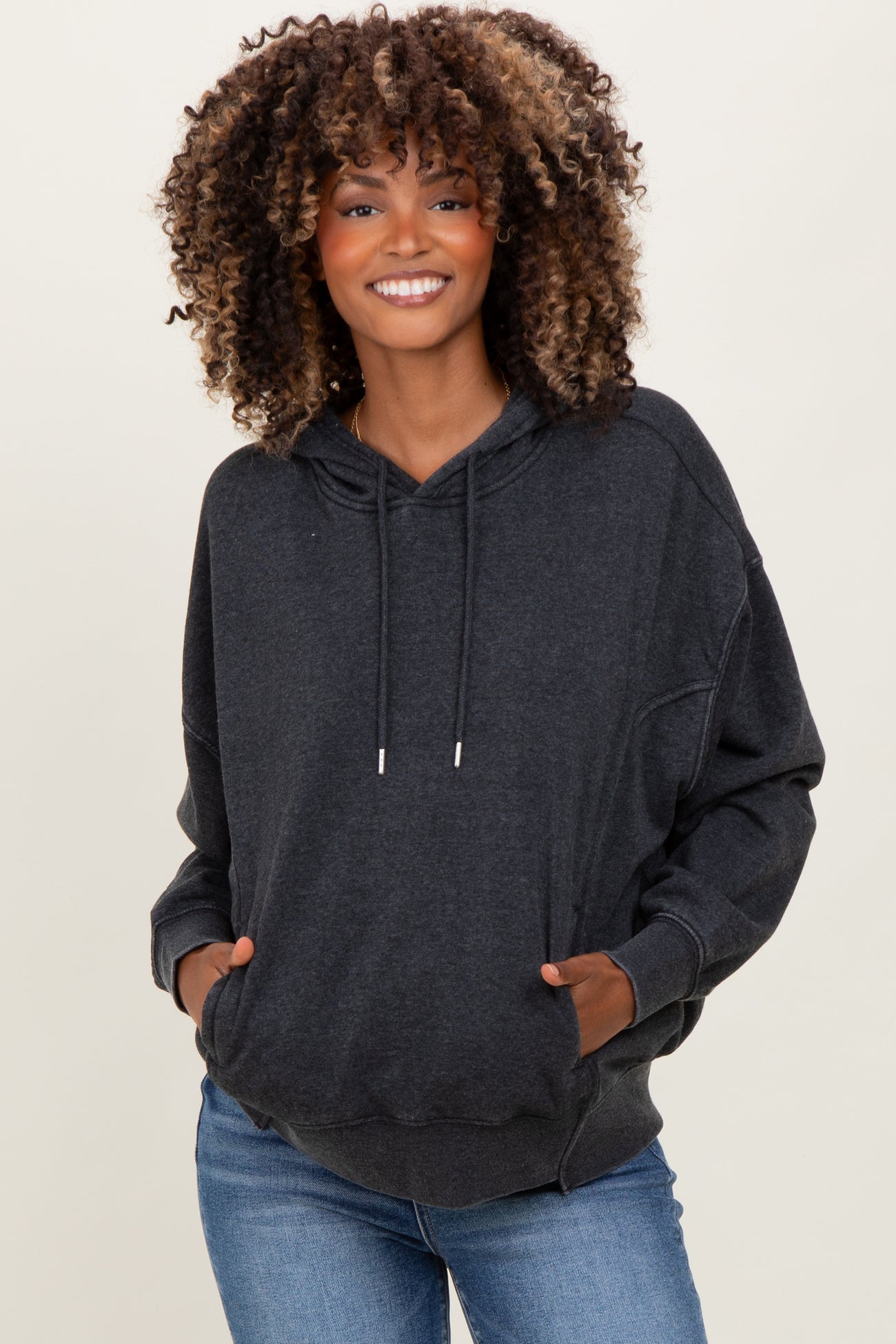 Black Drop Shoulder Long Sleeve Oversized Maternity Hoodie