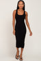 A solid sleeveless fitted maternity midi dress with a square neckline.