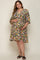 Details A floral knee length maternity plus size dress. Features a v-neck wrap neckline, cinched 3/4 length sleeves, and a waist tie. Top front is lined. Content + Care