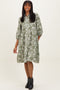 Black Floral Button Down 3/4 Sleeve Midi Dress