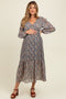 Black Floral Pleated Bodice 3/4 Sleeve Maternity Midi Dress