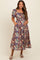 Black Floral Puff Sleeve Maternity Midi Dress
