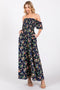 Black Floral Ruffle Shoulder Maternity Dress