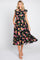 Black Floral Ruffle Shoulder Tiered Midi Dress