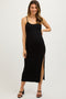 Black Floral Satin Deep V-Neck Puff Sleeve Maternity Maxi Dress