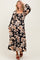 Black Floral Smocked Long Sleeve Midi Dress