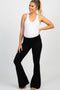 Solid hued basic full length pants featuring a foldover detail and wide leg opening.