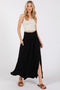 Black Foldover Waist Side Slit Maternity Maxi Skirt