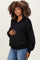 Stay cozy and stylish with our Black French Terry Quarter Zip Maternity Pullover. Crafted from soft, breathable French terry fabric, this pullover offers gentle stretch to accommodate your growing bump comfortably. The quarter zip design adds versatile styling options and easy temperature control, while the elastic cuffs and hem ensure a snug fit. Featuring convenient front pockets and a relaxed silhouette, it's perfect for casual outings or lounging at home. Pair it effortlessly with your favorite maternity jeans or leggings for everyday comfort and chic layering throughout pregnancy.