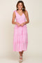 A maternity set with a crop top and wide leg pants. The smocked crop top features an adjustable front tie, and the pants have an elastic waistband and side pockets.