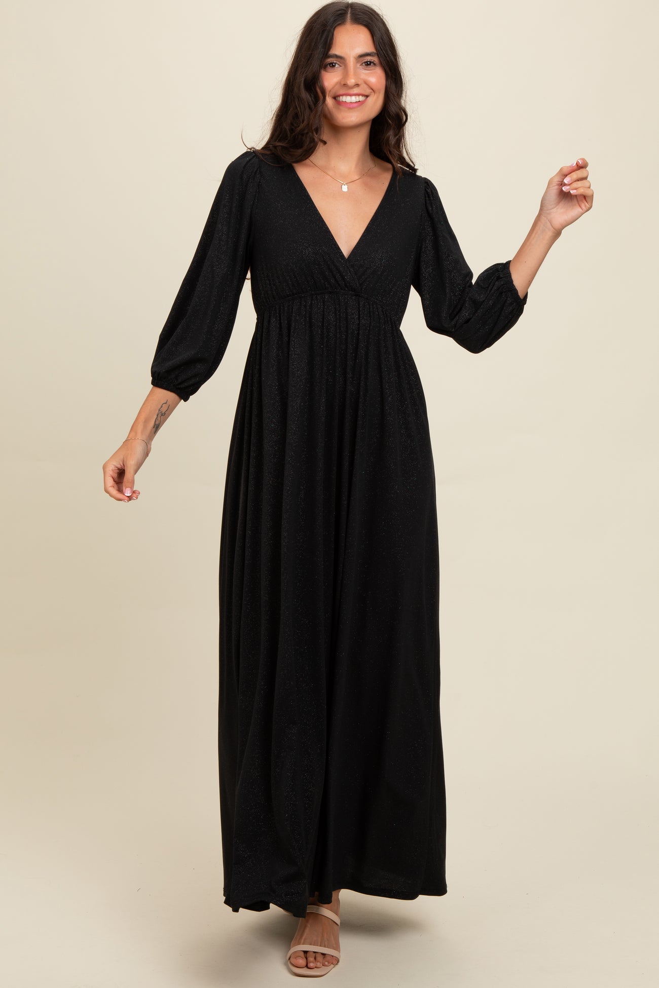 Black Glitter V-Neck Maxi Dress