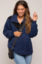A solid long sleeve maternity pullover top with a half zip neckline and two side pockets.