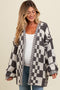 Stay cozy and stylish with our Black Mixed Check Pattern Chunky Cardigan. Crafted with a bold black and white check design, this oversized cardigan features a chunky knit texture that adds warmth and a trendy edge to any outfit. The open front and balloon sleeves with ribbed cuffs create a relaxed, comfortable fit perfect for layering over your favorite tees or tops. Versatile and eye-catching, this cardigan pairs effortlessly with jeans or leggings for everyday wear. Elevate your fall and winter wardrobe with this statement piece that’s both chic and cozy.