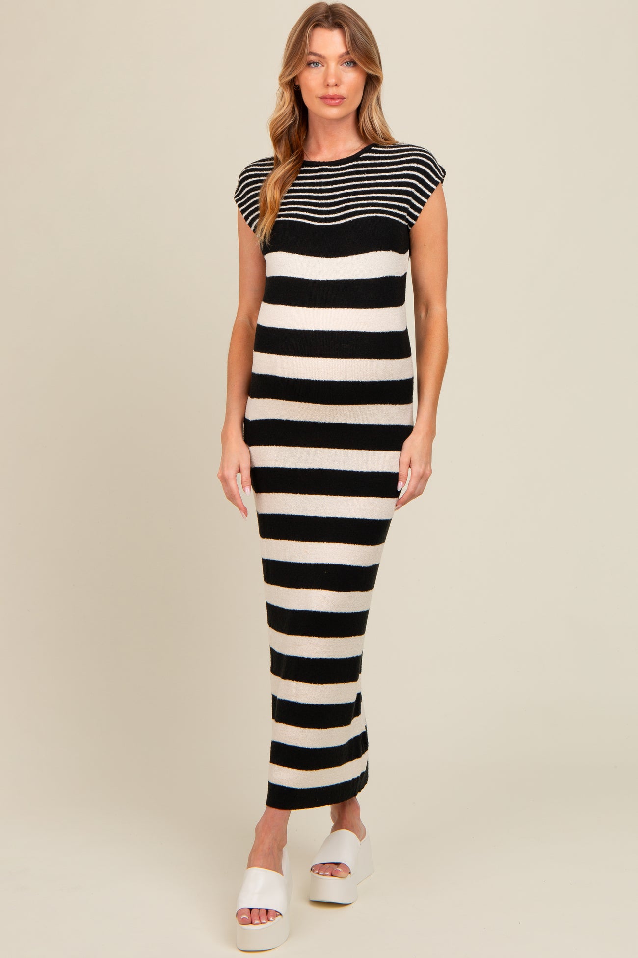 Black Mixed Stripe Fitted Maternity Sweater Dress