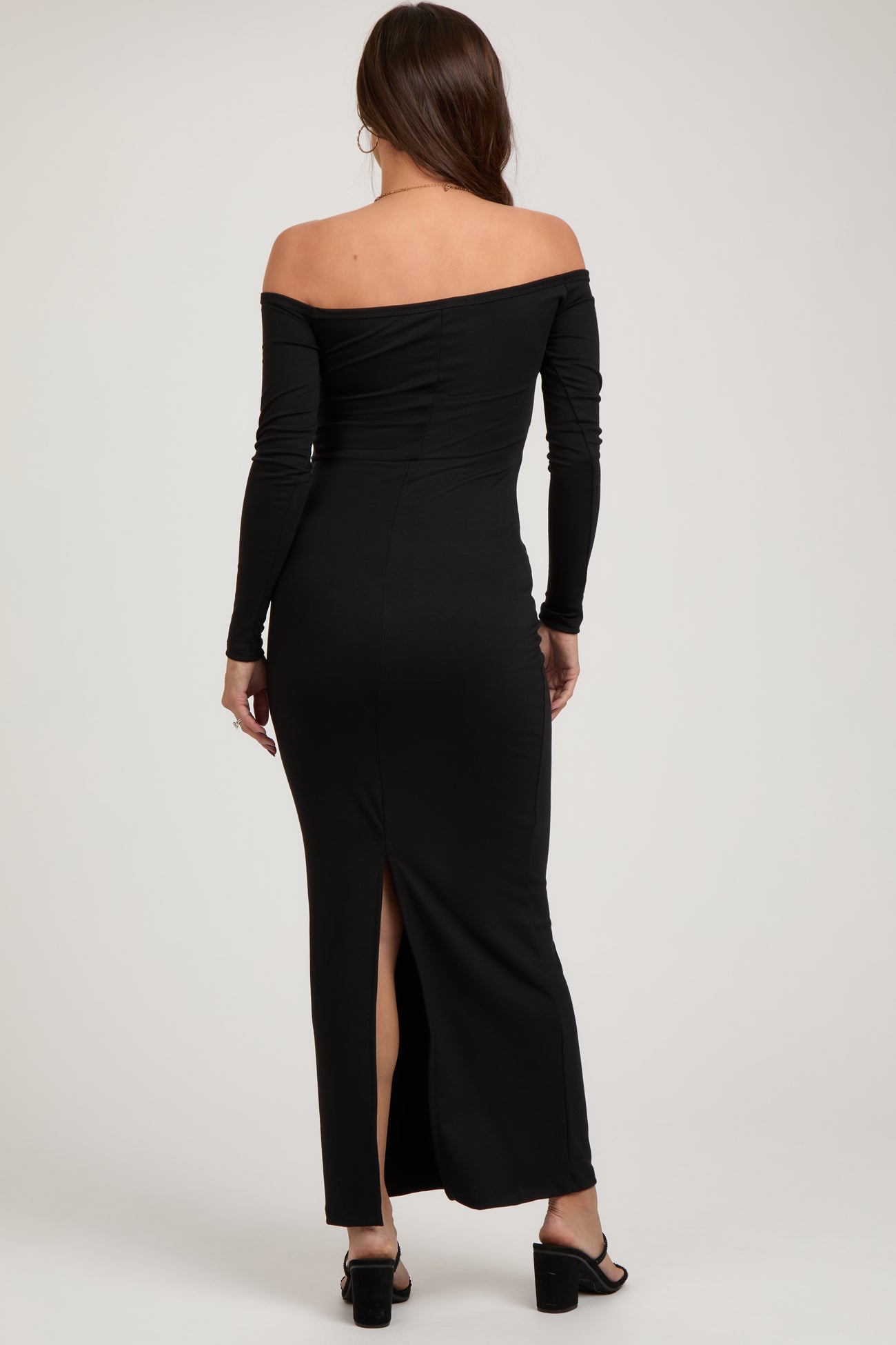 Black Off Shoulder Long Sleeve Maternity Maxi Dress