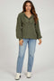 A pattern knit maternity sweater featuring a rounded neckline and long sleeves.