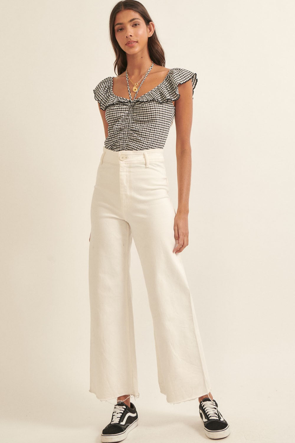 Black Plaid Boat Self-Tie Halter Gathered Bodysuit