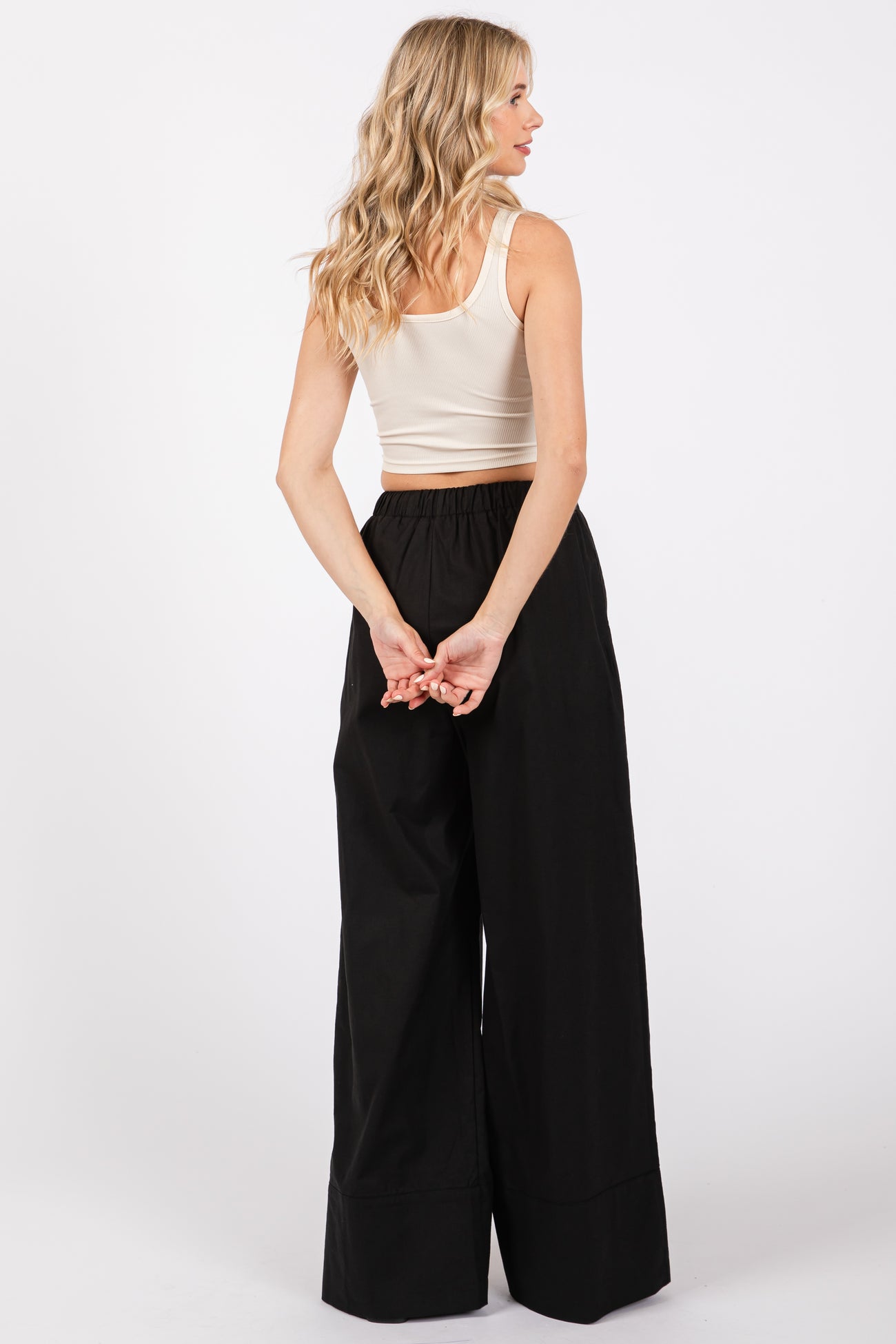 Black Pleated Drawstring Waist Pants