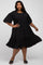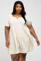 Details A solid hued plus size dress featuring a rounded neckline, shot puff sleeves and a tiered skirt. Content + Care