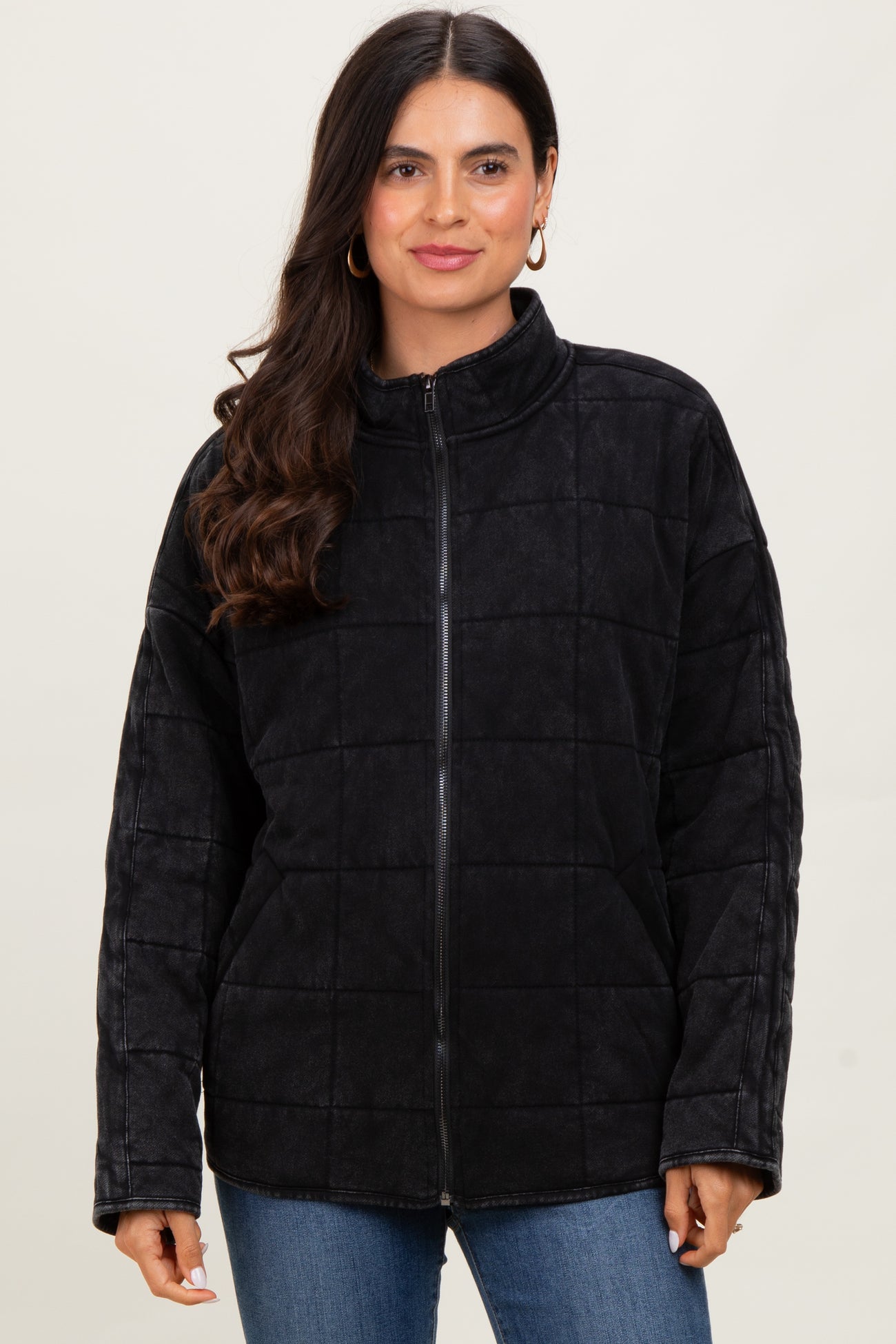 Stay cozy and stylish with this Black Quilted Oversized Jacket. Featuring a relaxed fit and a subtly textured quilted pattern, this jacket is perfect for layering on chilly days. The stand-up collar and full zip front add versatility and ease, while the long sleeves with dropped shoulders enhance its casual vibe. Crafted from soft, durable fabric, it pairs effortlessly with jeans and boots for a chic, everyday look. Whether you're heading out for a casual stroll or running errands, this jacket brings warmth and urban edge to your wardrobe. Essential comfort meets contemporary design!