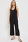 Black Ribbed Button Front Sleeveless Jumpsuit
