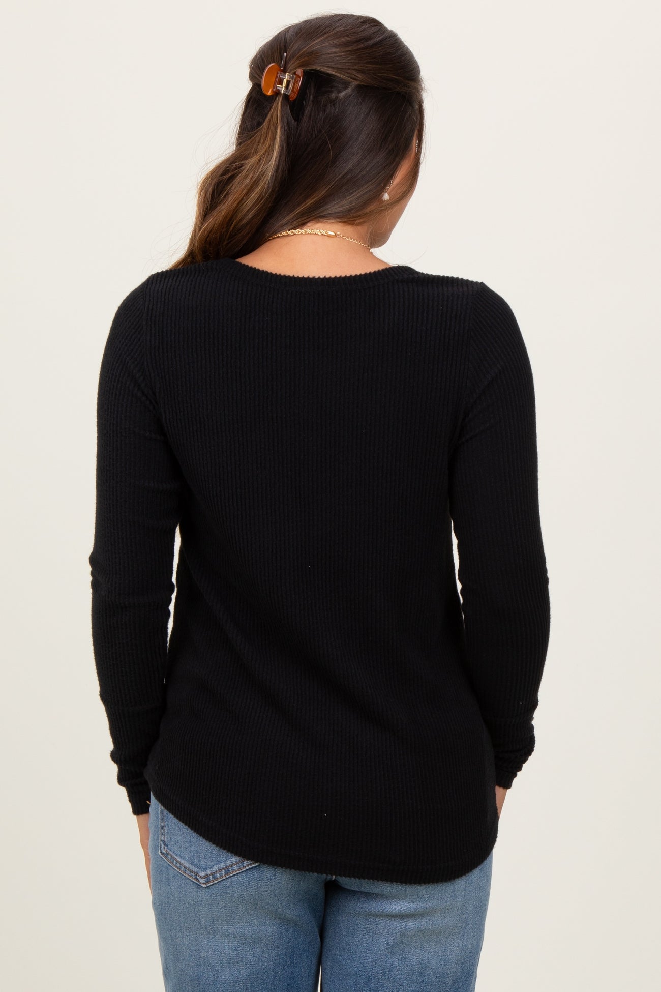 Black Ribbed Knit Button Detail Long Sleeve Maternity Top