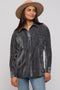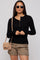 A ribbed knit top featuring long sleeves, front buttons and a rounded neckline.