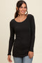 Black Ribbed Knit Long Sleeve Lettuce Hem Top