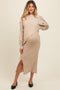 Black Ribbed Knit Side Slit Maternity Midi Dress