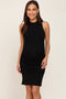 A solid fitted midi dress in a ribbed material with side ruching on both sides.