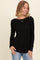 Elevate your everyday wardrobe with this Black Ribbed Scoop Neck Long Sleeve Top. Crafted from a soft, stretchy ribbed fabric, this top ensures all-day comfort while flattering your silhouette. The scoop neckline adds a subtle touch of femininity, perfect for layering or wearing solo. Its versatile black hue pairs effortlessly with jeans, skirts, or layered under jackets and cardigans. Whether you’re dressing up for a casual outing or keeping it cozy at home, this long sleeve top is a timeless essential you'll reach for again and again. Easy to style, easy to love!