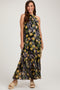 Black Ribbed Short Sleeve Maternity Midi Dress