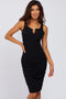 Black Ribbed Split Front Ruched Maternity Dress