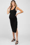 A ribbed knit midi dress featuring a square neckline, adjustable cami straps and a side slit.