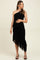 Black Ruched Mesh One Shoulder Asymmetric Maternity Dress