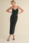Black Ruffle V Neck Ribbon Bow Pleated Lace Lined Maternity Dress