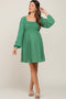 Details A solid top featuring long sleeves, puff shoulders, a back keyhole button closure, and a ruffled mock neckline. Content + Care